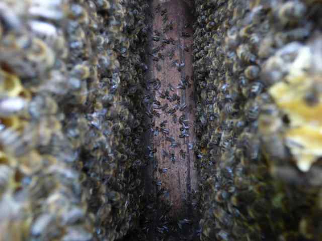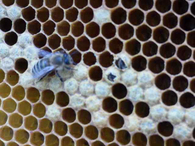 Középen jól látható a nagyobb, robosztusabb herefiasítás, miből a herék új nemzedéke várható. Az atkák elleni biovédekezés egyik fontos eleme a herefiasítások számának csökkentése, mivel az atkák ezekben előszeretettel nagy számban szaporodnak.