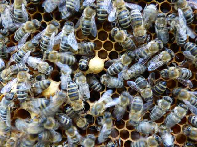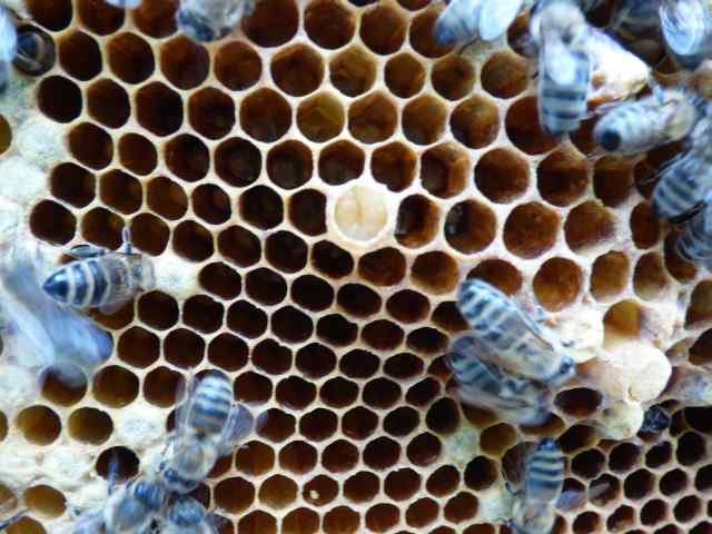 Még be nem fedett fiasítás, középen jól látható a lárva